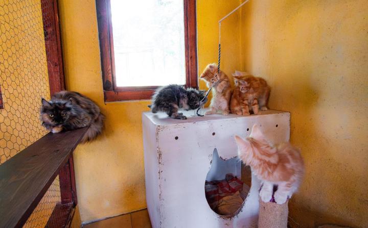 Sur un parc boisé de 3 hectares, nous disposons des infrastructures pour élever les chats Maine Coon dans des conditions exigées : des boxes bien aménagées de toutes les tailles, des loges de détente spacieuses et sécurisées, un grand terrain de jeux.