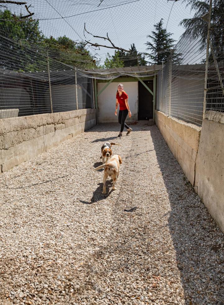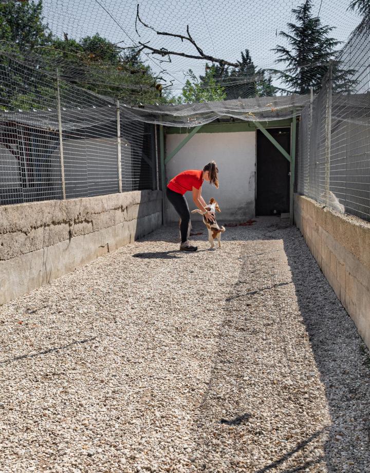 Pour son épanouissement, nous avons aménagé des boxes de différentes tailles qui peuvent être chauffées en hiver. Nous lui consacrons du temps pour sa promenade et son éducation.